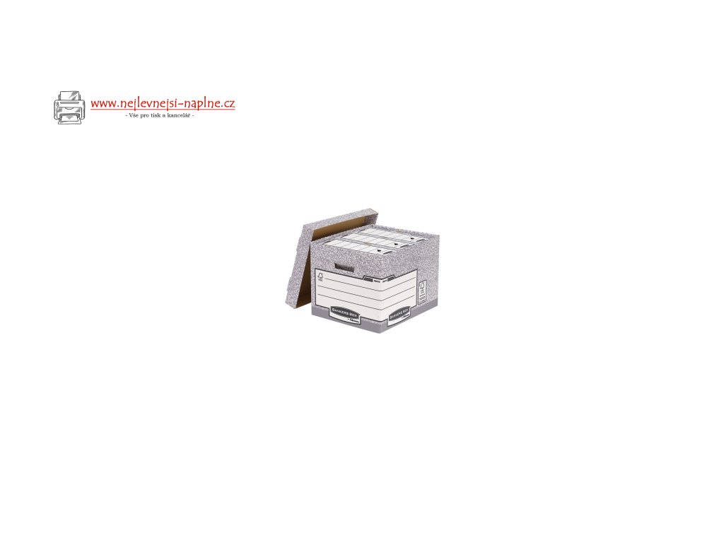 Kontejner ze série Banker Box SYSTEM FSC ®.Umožňuje archivaci 4 boxů o šířce 80 mm 3 boxy o šířce 100 mmMožnost skladování kontejnerů nad sebou do 4 ks.Velké etikety usnadňují popis obsahu.Vnějším rozměry produktu (š x v x h): 340 x 295 x 405 mm.Vnitřní rozměry produktu (š x v x h): 325 x 285 x 385 mm.Dvojitá tloušťka kartonu na dně kontejneru.Balení obsahuje 10 ks.Je vyrobený ze 100% recyklované vlnité lepenky a je možné jej dále recyklovat.Je opatřen certifikátem FSC.Doplňkové parametry