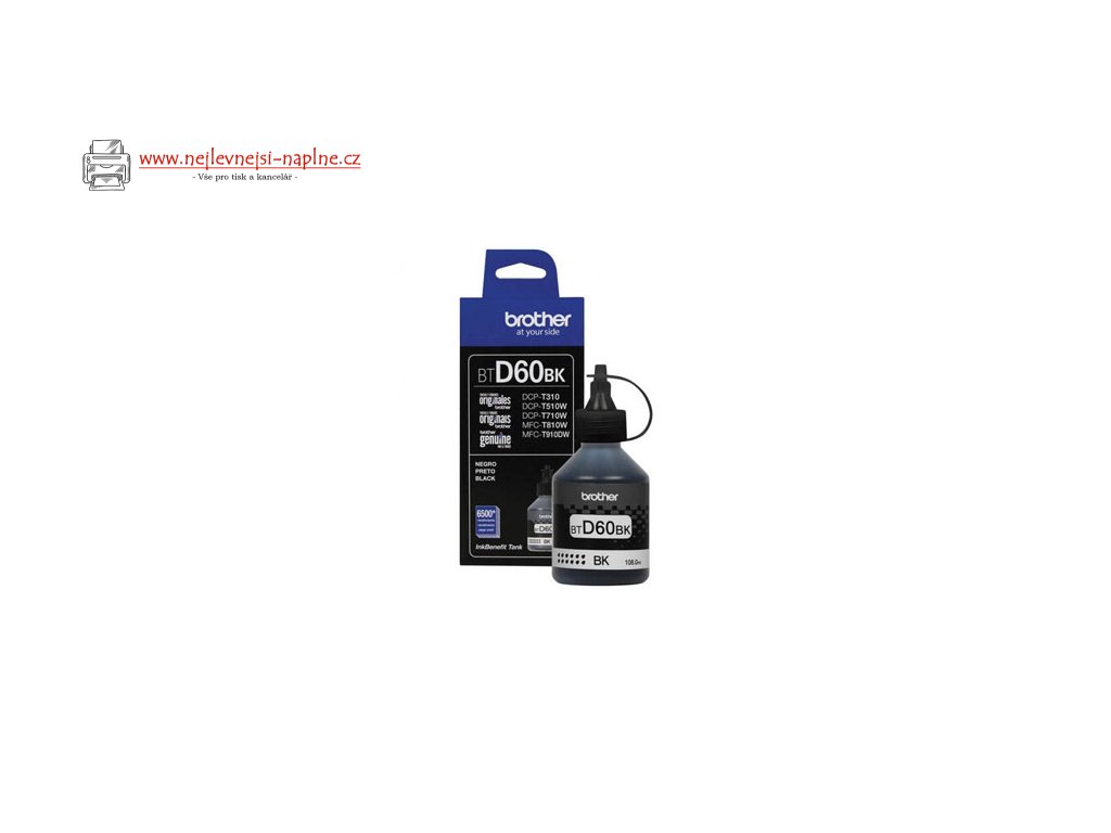 Brother originální ink BTD60BK, black, 6500str., 108mlTato originální lahvička s černým inkoustem Brother BTD60BK byla speciálně vyvinutá pro zajištění kvality dokumentů při každém tisku. S velmi vysokou výtěžností 5 000 stran skončíte s častou manipulací s inkousty, stačí pouze naplnit zásobník inkoustu a ocenit kvalitní výtisky.
