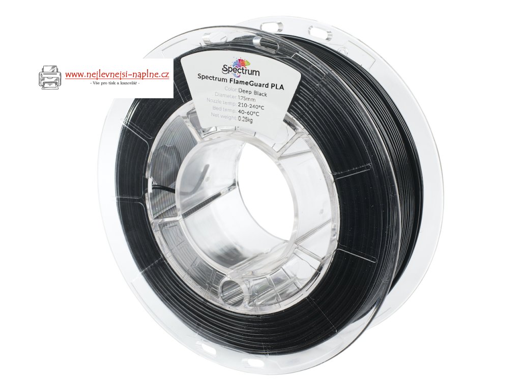 Představujeme nové vlákno Spectrum FlameGuard PLA, vyrobené z inovativního vzorce Floreon® Therma-Tech PLA, vítěze ceny za inovaci bioplastů Asociace plastového průmyslu 2024, určené pro aplikace, které vyžadují odolnost i požární bezpečnost. FlameGuard PLA je bezhalogenový, nehořlavý materiál, který splňuje nejvyšší standardy požární bezpečnosti V0, díky čemuž je perfektní volbou pro pokročilé aplikace, jako jsou skříně elektroniky, součásti automatizačních zařízení, povrchová úprava nábytku a kryty reproduktorů. FlameGuard PLA je ekologická alternativa ke standardnímu FR ABS, který obsahuje halogeny. Halogeny omezují recyklovatelnost materiálu, což často vede k odpadu na skládkách, zatímco naše vlákno podporuje udržitelný přístup, nabízí recyklovatelnost a snížený dopad na životní prostředí. Ve srovnání s tradičním FR ABS se FlameGuard PLA může pochlubit uhlíkovou stopou (PCF), která je až sedmkrát nižší – typicky 0,6 kgCO2e/kg pro materiál na bázi PLA oproti typicky 3,8 kgCO2e/kg pro ABS FR, při zachování podobných fyzikálních vlastností, jako je modul pružnosti a pevnost v tahu. FlameGuard PLA je inovativní materiál vyrobený z Floreon® Therma-Tech PLA s vysokým obsahem obnovitelných zdrojů, poskytuje odolnost srovnatelnou s FR ABS a zároveň splňuje standardy zpomalování hoření V0 UL94. Nabízí bezpečnost, ekologickou odpovědnost a vysokou kvalitu v jediném řešení. Klíčové vlastnosti: Nehořlavost V0 (UL94) Vyrobeno z Floreon® Therma-Tech PLA Bezhalogenové, šetrné k životnímu prostředí Ekologická alternativa ABS FR 7krát nižší uhlíková stopa než ABS FR Podobné mechanické vlastnosti jako ABS FR Odolnost vůči vysokým teplotám, vysoká krystalinitaDoplňkové parametry