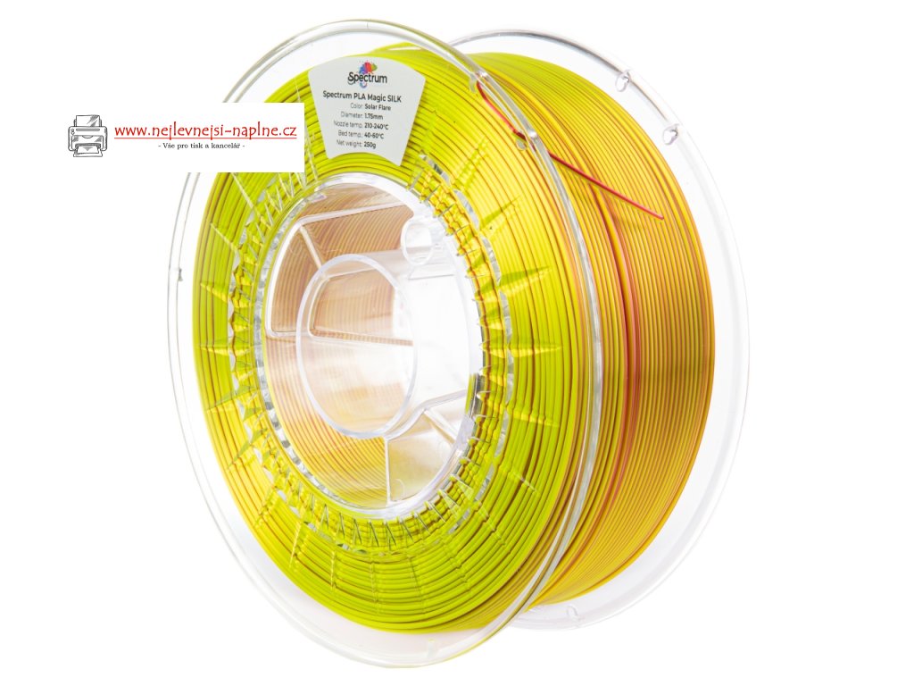 Sloučení barev – transformujte své 3D výtisky pomocí Magic SILK PLA Spectrum Magic SILK PLA je inovativní filament pro 3D tisk, který díky svému neuvěřitelnému efektu posunu barev promění vaše projekty ve skutečná umělecká díla. Magic SILK PLA, využívající pokročilou technologii koextruze, kombinuje dvě barvy v jednom prameni, čímž vytváří dechberoucí barevné přechody a dynamické světelné efekty. Každý potisk vyrobený tímto vláknem se třpytí barvami v závislosti na úhlu pohledu a osvětlení, což vašim modelům dodává hloubku a jedinečný charakter. Magic SILK PLA nabízí hladký, lesklý povrch, který nejen upoutá pohled, ale také dodá eleganci každému projektu. Jeho výjimečné vlastnosti usnadňují použití a jsou kompatibilní s většinou 3D tiskáren využívajících technologii FDM/FFF, takže je ideální volbou pro začátečníky i pokročilé uživatele. Filament se vyznačuje vynikající přesností tisku. Potisky vytvořené pomocí Magic SILK PLA vypadají nejlépe v modelech se složitými detaily, kde je efekt změny barev nejpůsobivější. Díky Magic SILK PLA získají vaše projekty nový, mimořádný rozměr a do každého výtvoru vnesou prvek magie a inovace. Toto dvoubarevné vlákno je nepostradatelnou volbou pro designéry, umělce a nadšence 3D tisku, kteří chtějí vylepšit svou práci jedinečným magickým efektem. Klíčové vlastnosti Technologie koextruze: dvě barvy v jednom pramenu Dynamické barevné přechody v závislosti na úhlu pohledu Efekt změny barvy Hladký, hedvábný potiskovaný povrch Vysoká estetika a jedinečný charakter modelů Kompatibilita s většinou 3D tiskáren FDM/FFF Snadný tisk Aplikace Dekorativní umění Návrh interiéru Vzdělávací projekty PrototypováníDoplňkové parametry