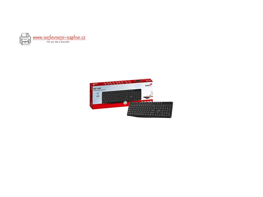 Genius KB-7200Bezdrátová klávesnice je navržena tak, aby uživateli poskytla maximální komfort při každodenní práci. Ergonomický sklon společně s klávesami typu chiclet umožňuje efektivní a pohodlné psaní. Je vybavena samostatnou klávesou pro vyvolání AI asistenta Microsoft Copilot v systému Windows 11. Připojení je realizováno skrze technologii 2,4 GHz a miniaturní USB přijímač. Napájení mají na starost dvě AAA baterie, které jsou součástí balení.