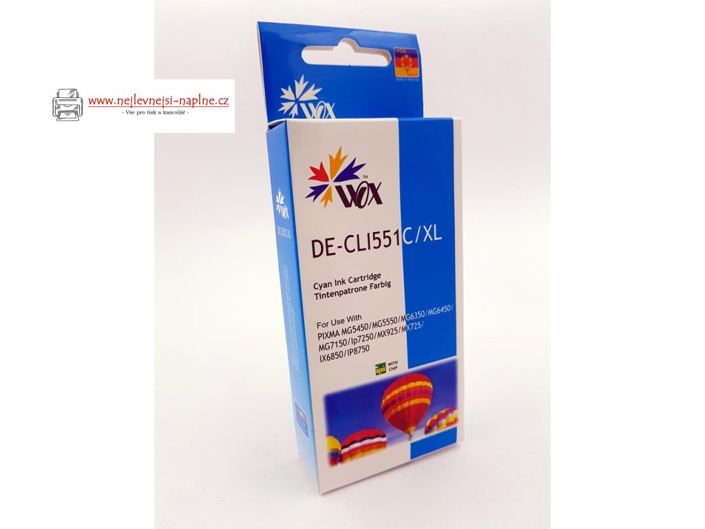 Inkoustová kazeta Wox Cyan CANON CLI 551C náhradní s čipem CLI551C (6509B001 )