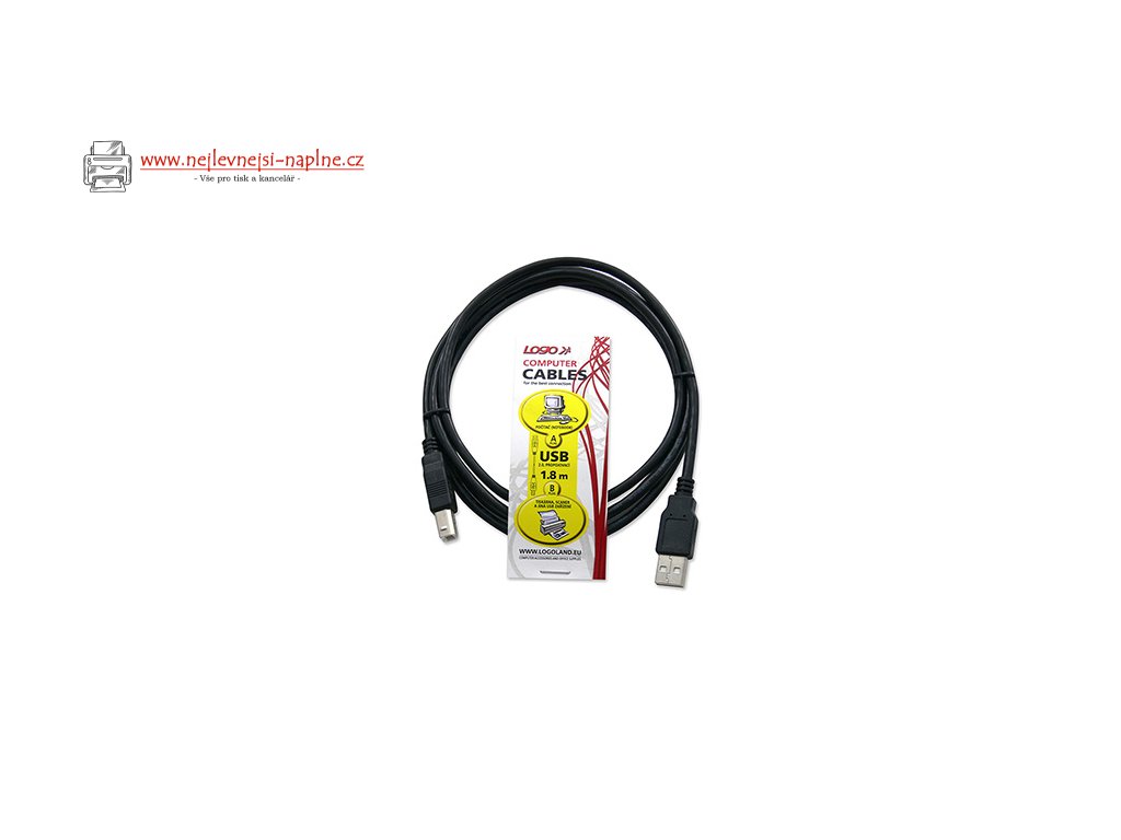 Kabel USB (2.0) - USB A M - USB B M - 1.8m, černý, LOGOPropojovací USB 2.0 kabel určený k propojení běžných zařízení jako například počítače s tiskárnou (či skenerem nebo multifunkčním zařízením).